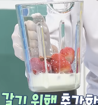- 믹서에 아몬드 30알을 넣고 딸기와 우유를 1:1 비율로 넣는다.