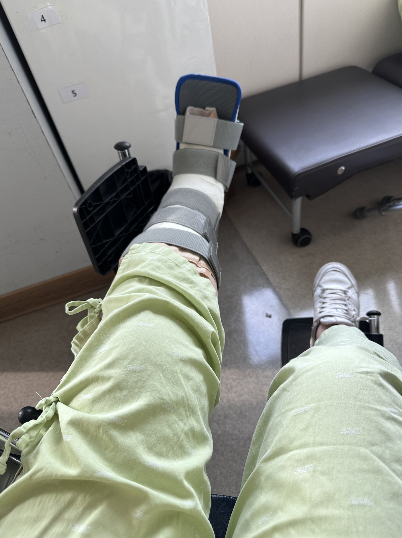 - 약 4주간 통깁스 및 휠체어, 양쪽 목발 이용