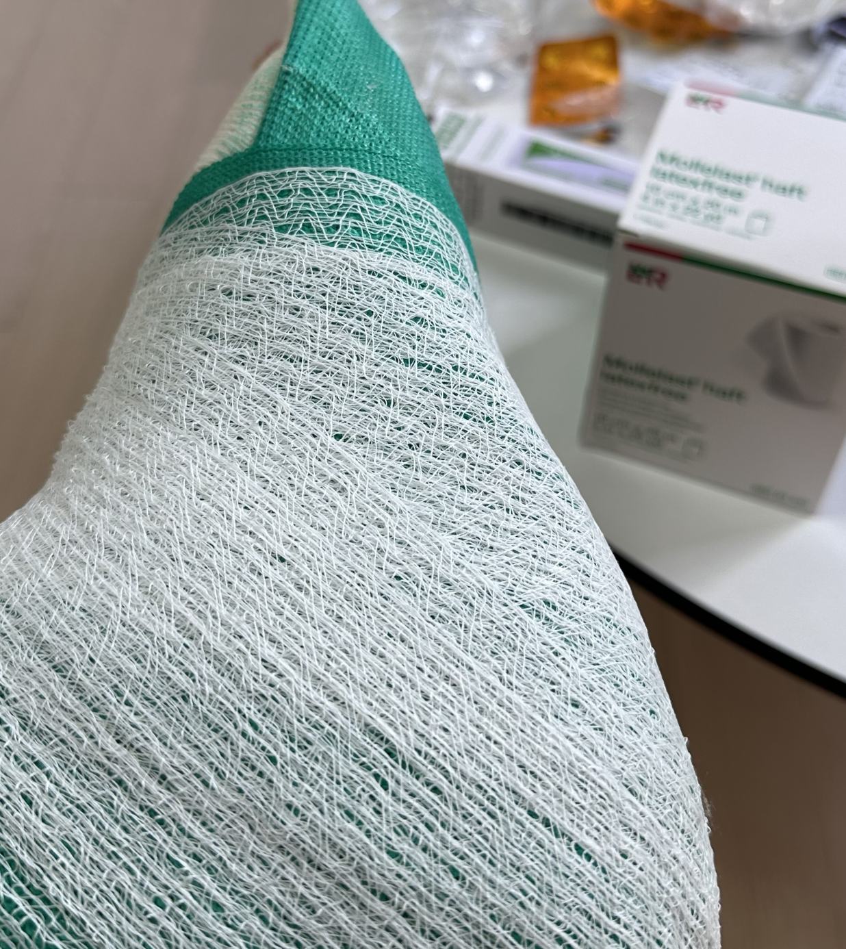 석고 속의 솜이나 거즈는 절대로 빼면 안됩니다. 가려움이나 모종의 이유로 구멍을 뚫거나 이물질을 삽입해서 긁게 되면 피부에 손상과 감염의 우려가 있어서 절대로 하면 안됩니다.